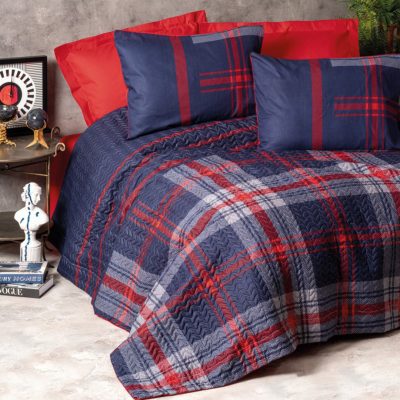 ست کاور دونفره ۴ تکه پنبه‌دوزی مدل Masculine Abel Kirmizi