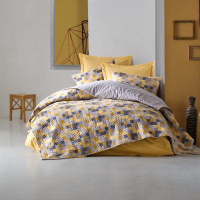 ست کاور دونفره ۴ تکه پنبه‌دوزی مدل Minimal Elon Sari