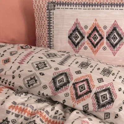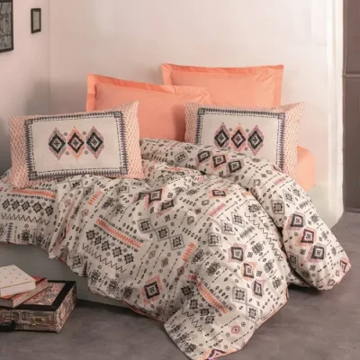 ست کاور دونفره ۴ تکه پنبه‌کتان مدل Ethnic ترک