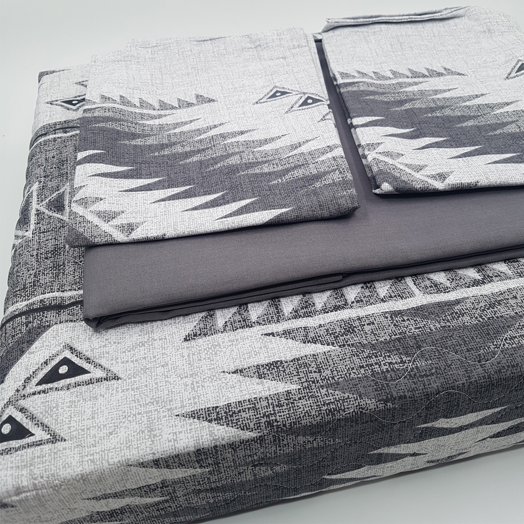 ست کاور دونفره ۴ تکه پنبه‌دوزی مدل Minimal Elon Sari؛ ترکیبی از مدرنیته و راحتی چهارفصل