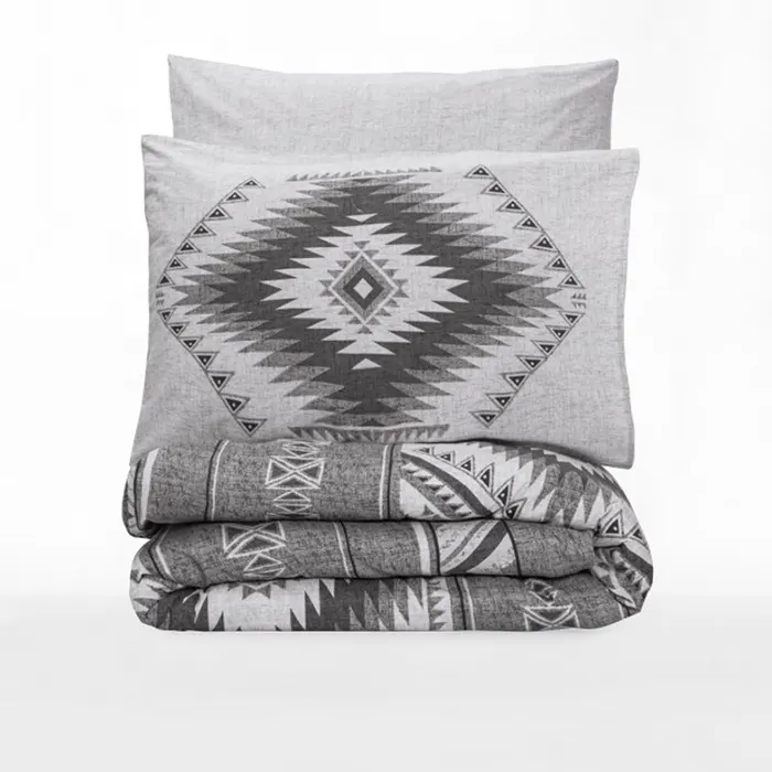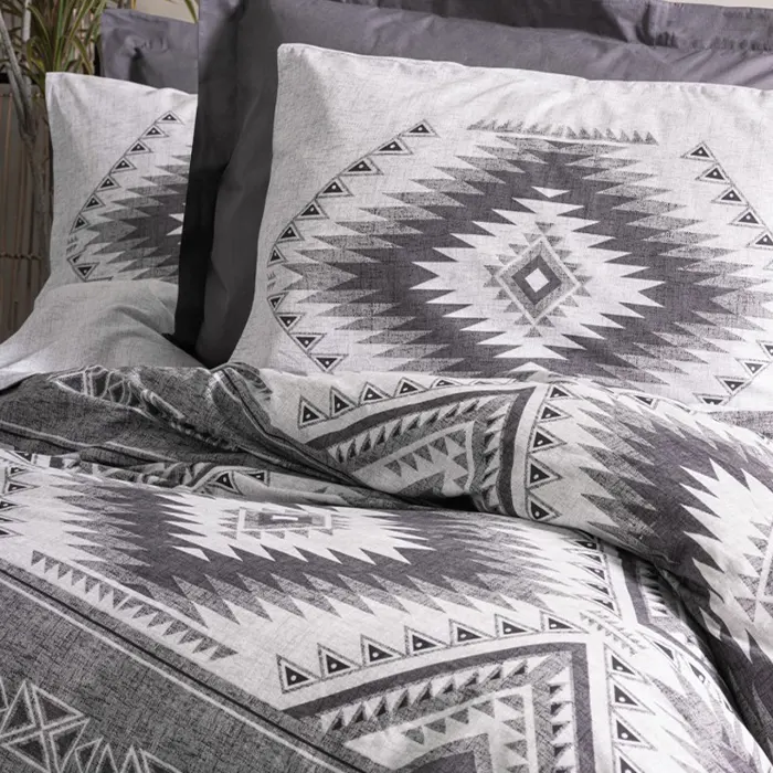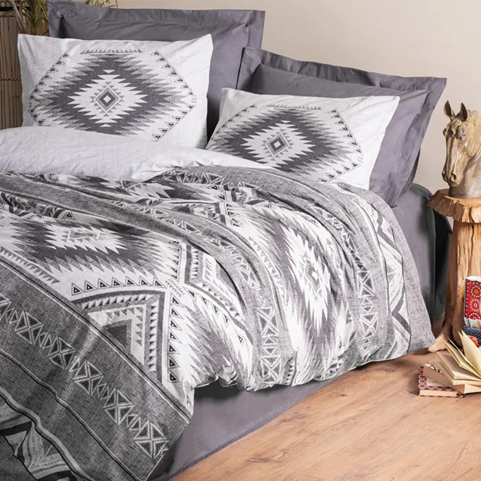 مدل Ethnic با نقشهای هندسی یا الهامگرفته از طرحهای بومی، حالوهوای متفاوتی ایجاد میکند. این طراحی با رنگهای طبیعی و گرم، هماهنگ با دکوراسیون روستیک، کلاسیک سنتی یا حتی بوهمین، نمایی خاص به فضای اتاق خواب میدهد و آن را از حالت یکنواخت خارج میکند.