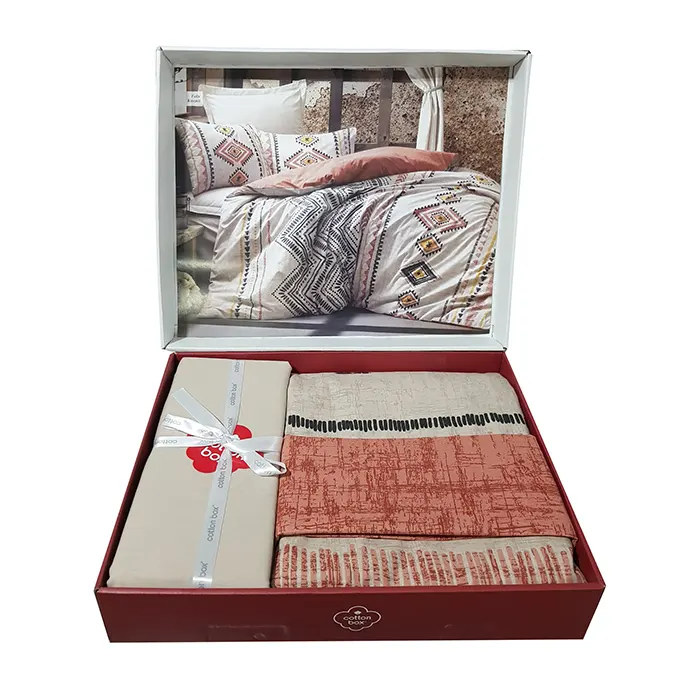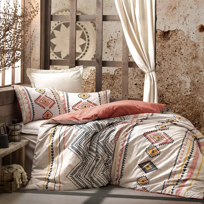 ست کاور دونفره ۴ تکه پنبه‌کتان مدل Ethnic ترک؛ جلوه‌ای گرم و اصیل در اتاق خواب
