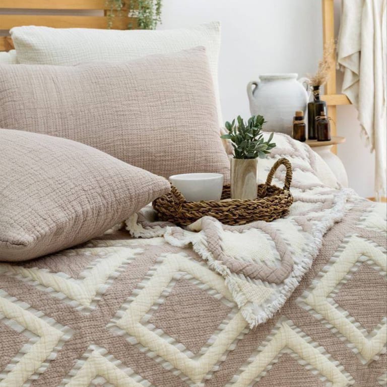 جنس: پارچهای با طرح برجسته لوزی، نرم، بادوام و قابل شستوشو